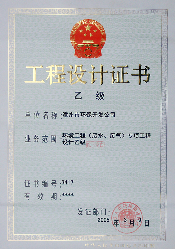 1、環(huán)境工程(廢水、廢氣)專項(xiàng)工程設(shè)計(jì)乙級(jí),證書編號(hào):3417;
